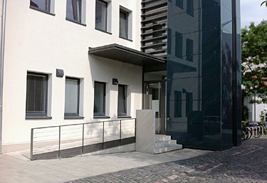 Energetische Sanierung und Anbau eines Aufzuges sowie die Erstellung eines neuen barrierefreien Zugangs. Das Gebäude steht unter Denkmalschutz. Für die behindertengerechte Erschließung wird an der derzeitigen Rückseite des Gebäudes ein zusätzlicher, barrierefreier Eingang geschaffen und ein Aufzug über alle Geschosse angebaut. Der neue Eingang liegt in der Sichtachse des Haupterschließungsweges des neuen Campus. Die visuelle Erscheinung ist daher von großer Bedeutung. Im Erdgeschoss wird zur besseren Orientierung und zur Aufwertung des Eingangsbereichs die trennende Flurtür ersatzlos ausgebaut um so einen lichtdurchfluteten und offenen Eingangsbereich zu schaffen.