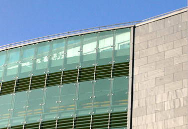 Ganzglasfassade und setzt diese mit zeitgegössischen Mitteln unter Beachtung