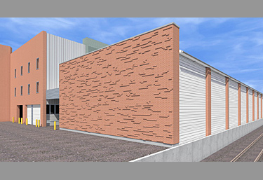 als Vormauerschale. Über ein Tor an der Längsseite der Halle können Güterwaggons