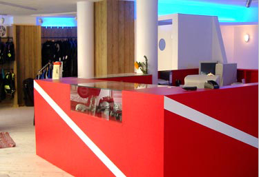 von Tauchen, Reisen, Wasser und Strand vermitteln. Der Büro- und Kassenbereich