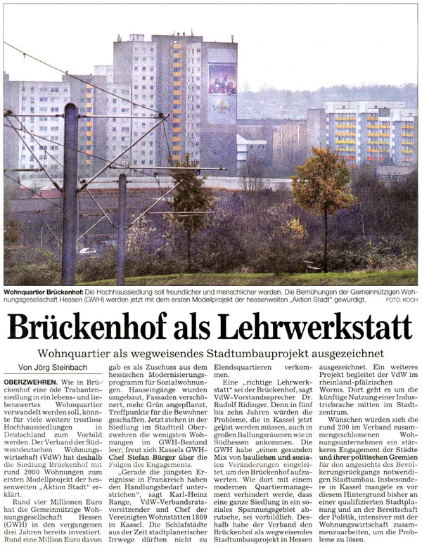 der grünen Umgebung der Waldstadt Brückenhof. Eine vorgestellte Fassade