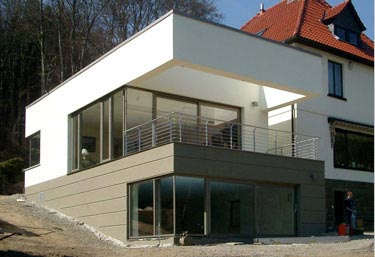 mit einer großen Terrasse nach Süden. Ein Fahrstuhl als Bindeglied