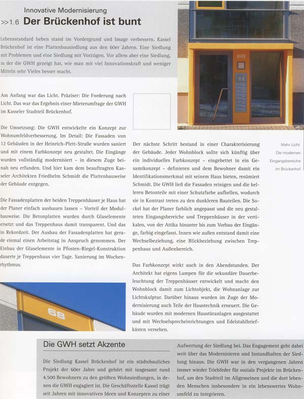 Pfosten-Riegelfassade ersetzt. Die Einbindung der Gebäude in ein Farbkonzept