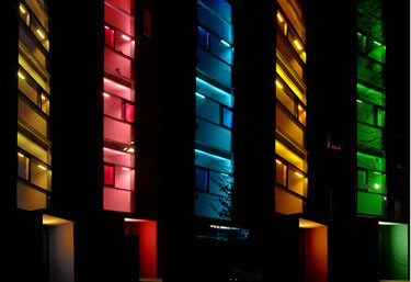 das Farbkonzept auch nachts wirksam werden. Der Wohnblock wird zum Lichtobjekt,