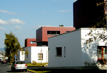 Neubau von 42 Wohneinheiten im geförderten Wohnungsbau. Dreigeschossige Bebauung in drei Riegeln, bei der über einer Erdgeschosswohnung jeweils zwei Maisonettewohnungen angeordnet sind.